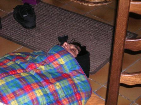 Le réveil fut difficile après cette soirée, en témoigne la tête de notre ami J-Y qui ayant tellement bu a dormi à même le sol.